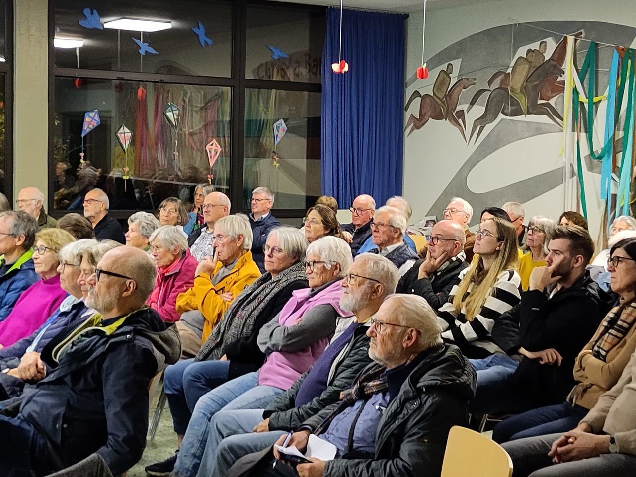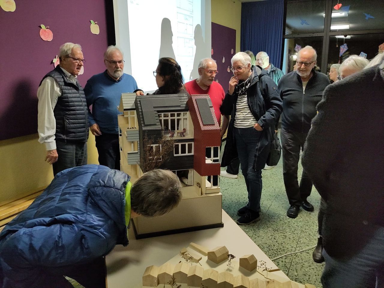 „Es müssen alternative Wohnformen akzeptiert und vorhandener Wohnraum transformiert werden“, so die Architektin Luisa Durst beim Vortrag zum „Wohnen im Alter“ im Foyer der Tarodunumschule. Rund 55 Personen waren der Einladung des Bürgervereins gefolgt, um sich über ihre Erkenntnisse zu Umbaumöglichkeiten der Reihenhäuser im Birkenhof zu informieren. Dabei ließ sich Frau Durst vom Ansatz des „Einfachen Bauens“ leiten, der vorhandene Bausubstanz nutzt und mit einfachen Mitteln neue Möglichkeiten schafft. In anschaulichen Modellen illustrierte die Referentin ihre Ideen für barrierefreied Wohnen. In regem Austausch wurde im Anschluss über den Vortrag diskutiert.